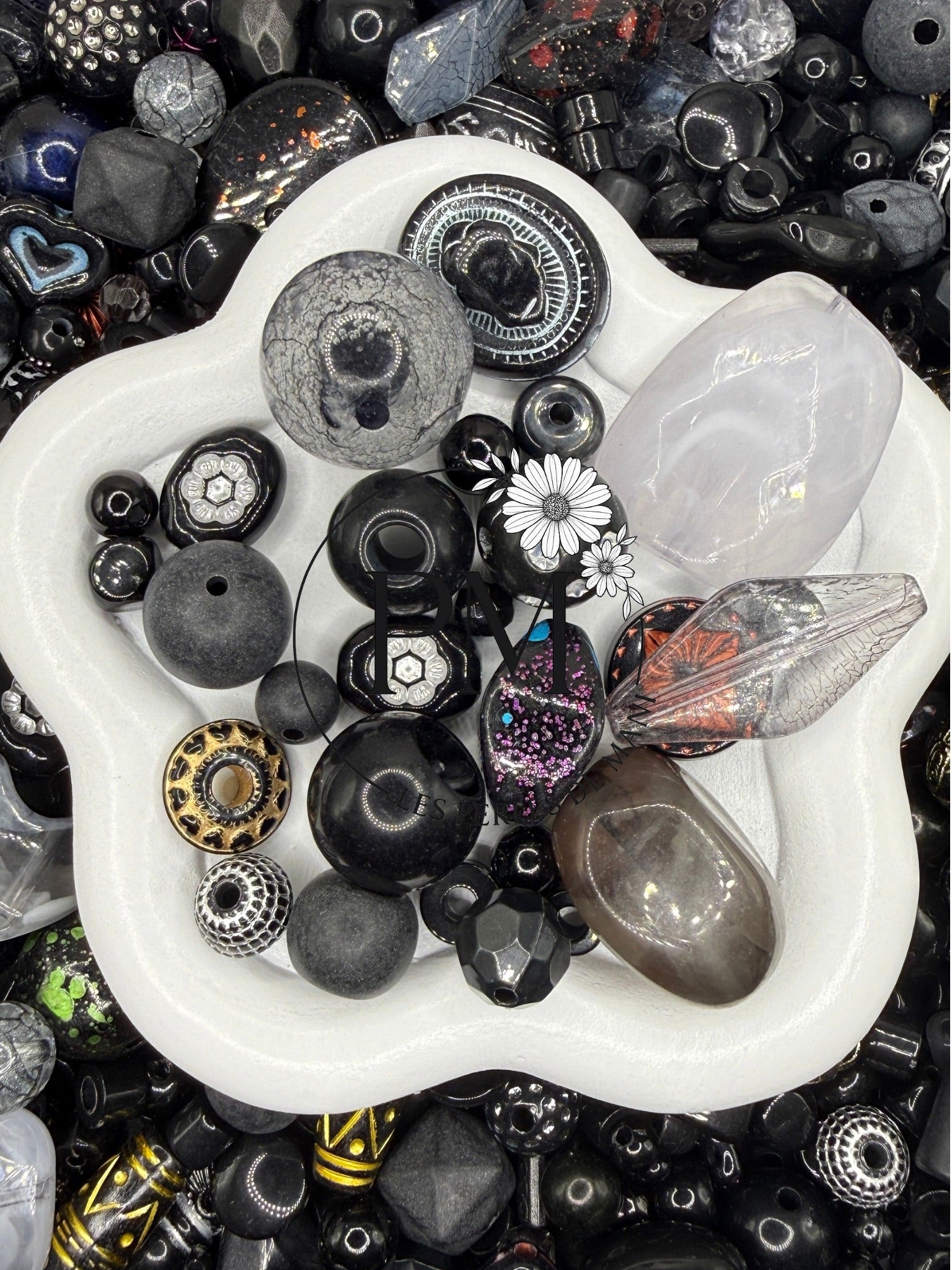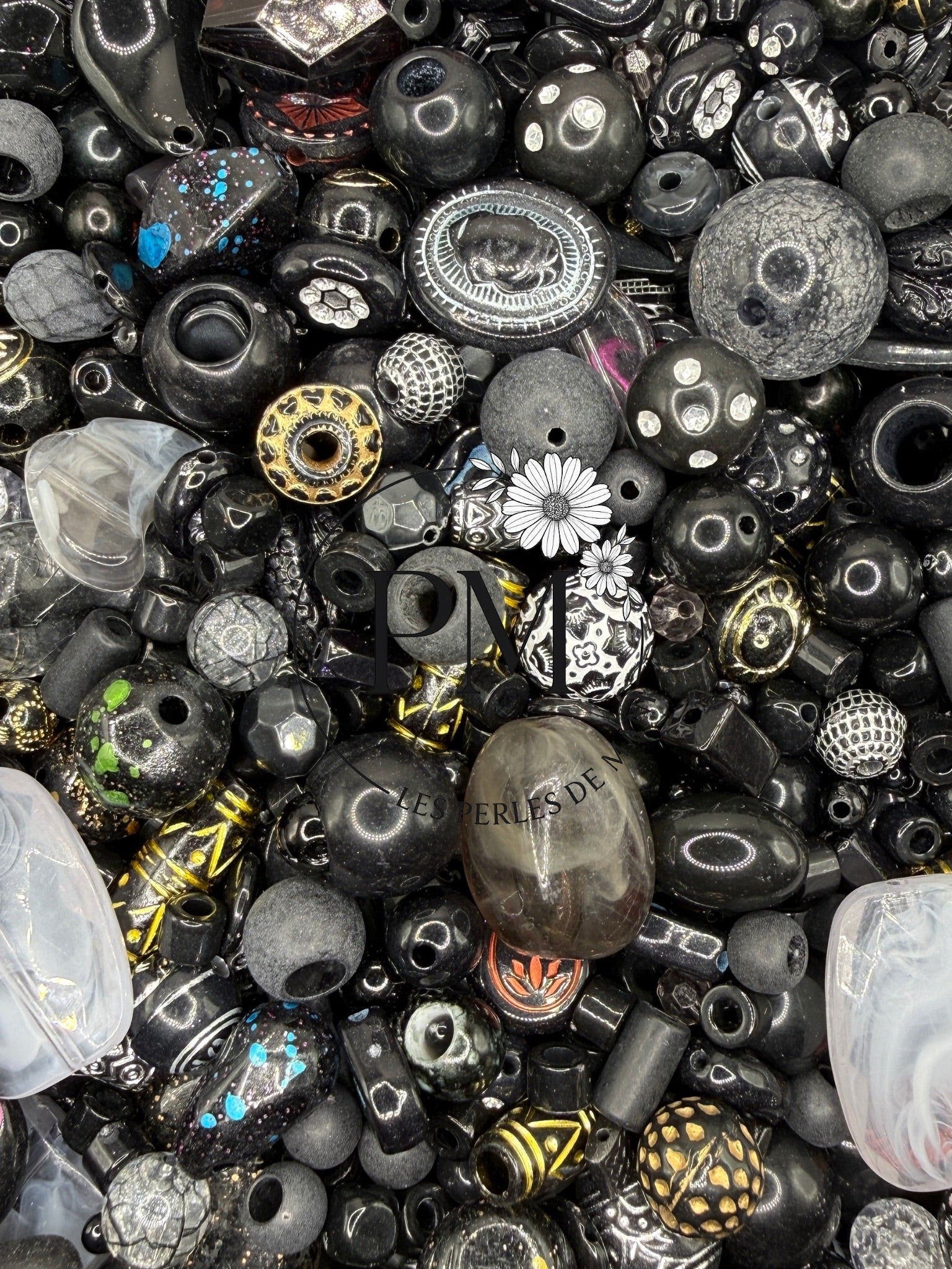 Dans ce mélange, vous retrouverez une sélection de perles en acrylique.