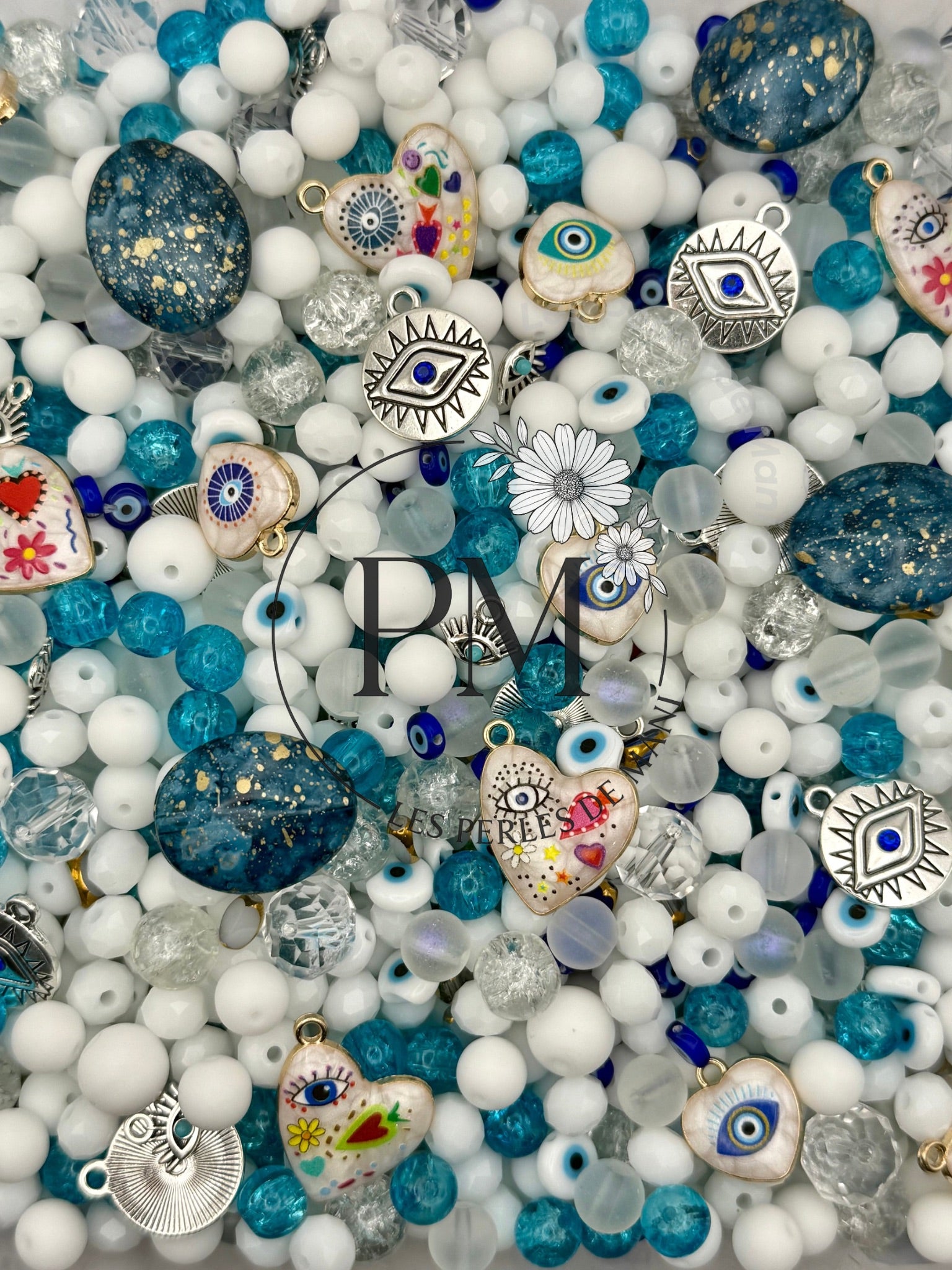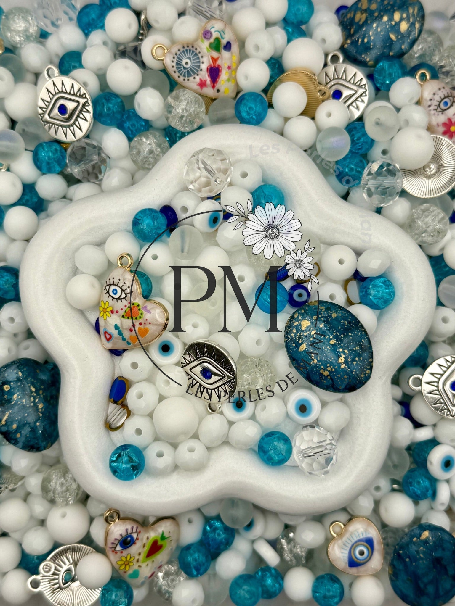 Perles nacrées, éclats dorés et symboles protecteurs s’unissent comme des talismans solaires.