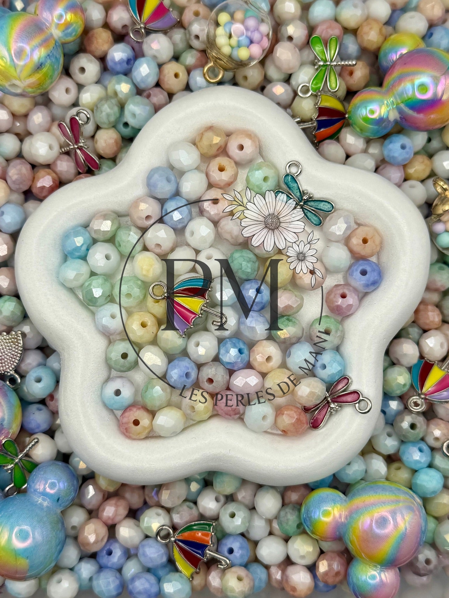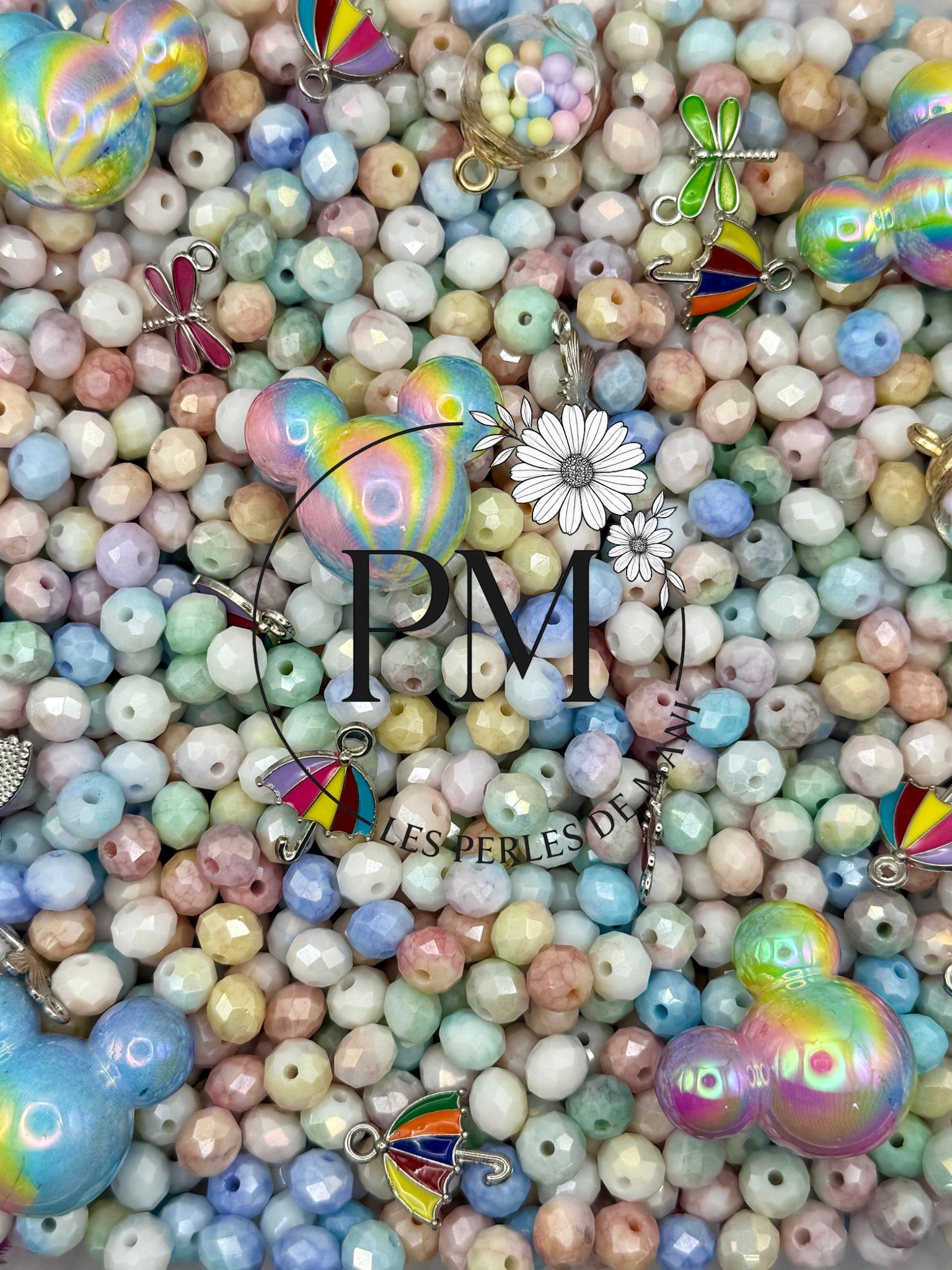 Ce mélange se compose de magnifiques perles en verre à facettes dans différents tons rose, blanc, vert, violet, jaune, orange et rouge en 8 mm.