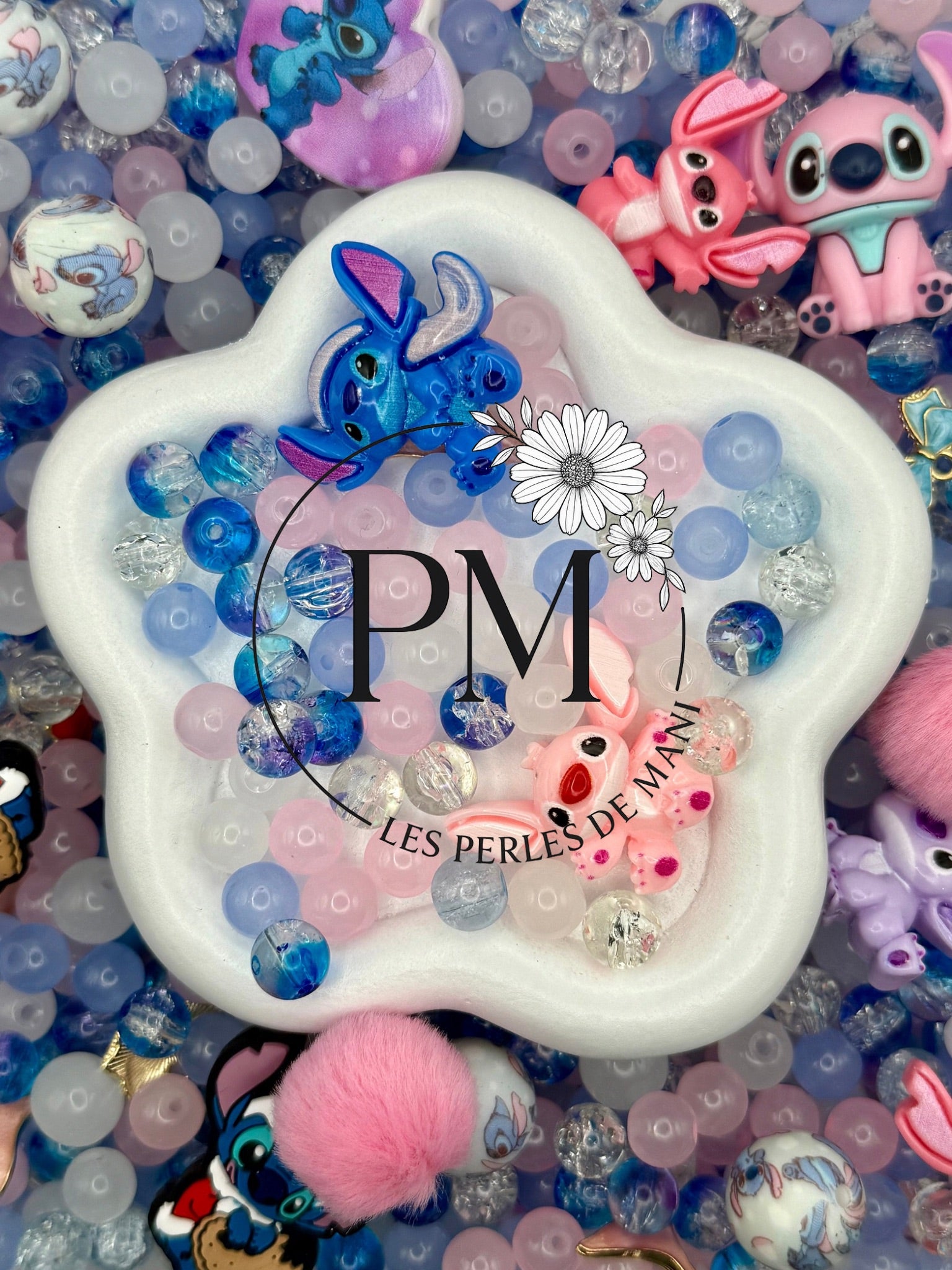 Ce mélange Stitch se compose de magnifiques perles en verre craquelé dans des tons rose, bleu, blanc et bleu-violet-blanc, accompagnées de perles blanches unies en 8 mm.